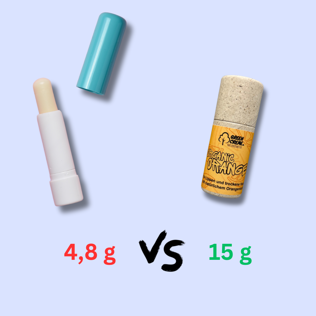 Ein weiterer Schritt in Richtung Nachhaltigkeit. Im Vergleich zu anderen Herstellern haben wir rund 3 mal so viel Inhalt. 1 Stick hält somit auch 3 mal so lange und spart somit 33% Verpackung.